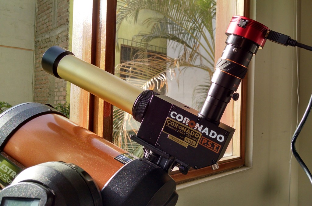 Telescopio Solar Coronado PST (H-Alfa): Este fue mi primer telescopio solar. Tenía 400 mm de distancia focal y 40 mm de apertura. Es un de los telescopios solares mas accesibles que existen en el mercado. Con el, pude ver por primera vez las llamaradas solares.