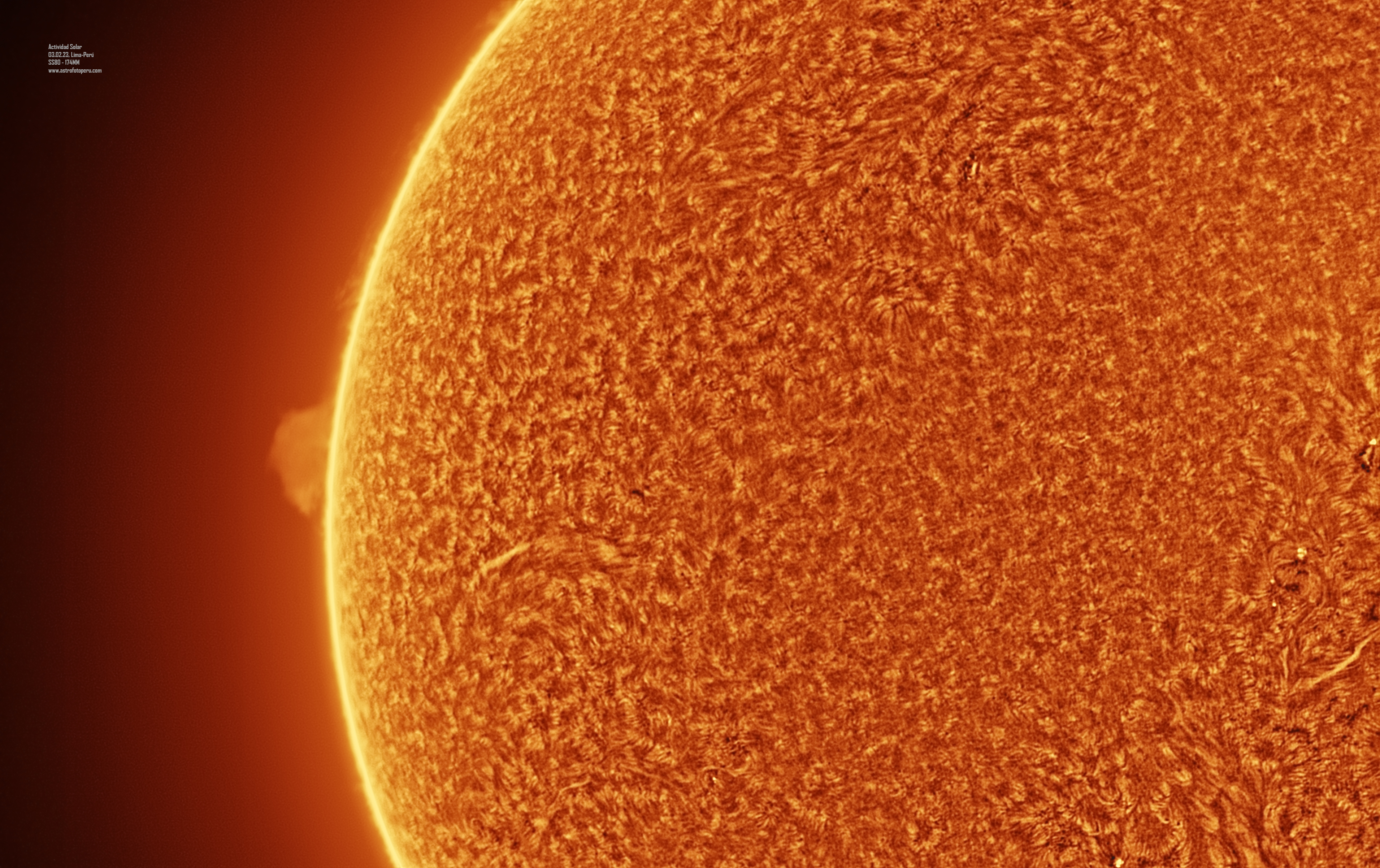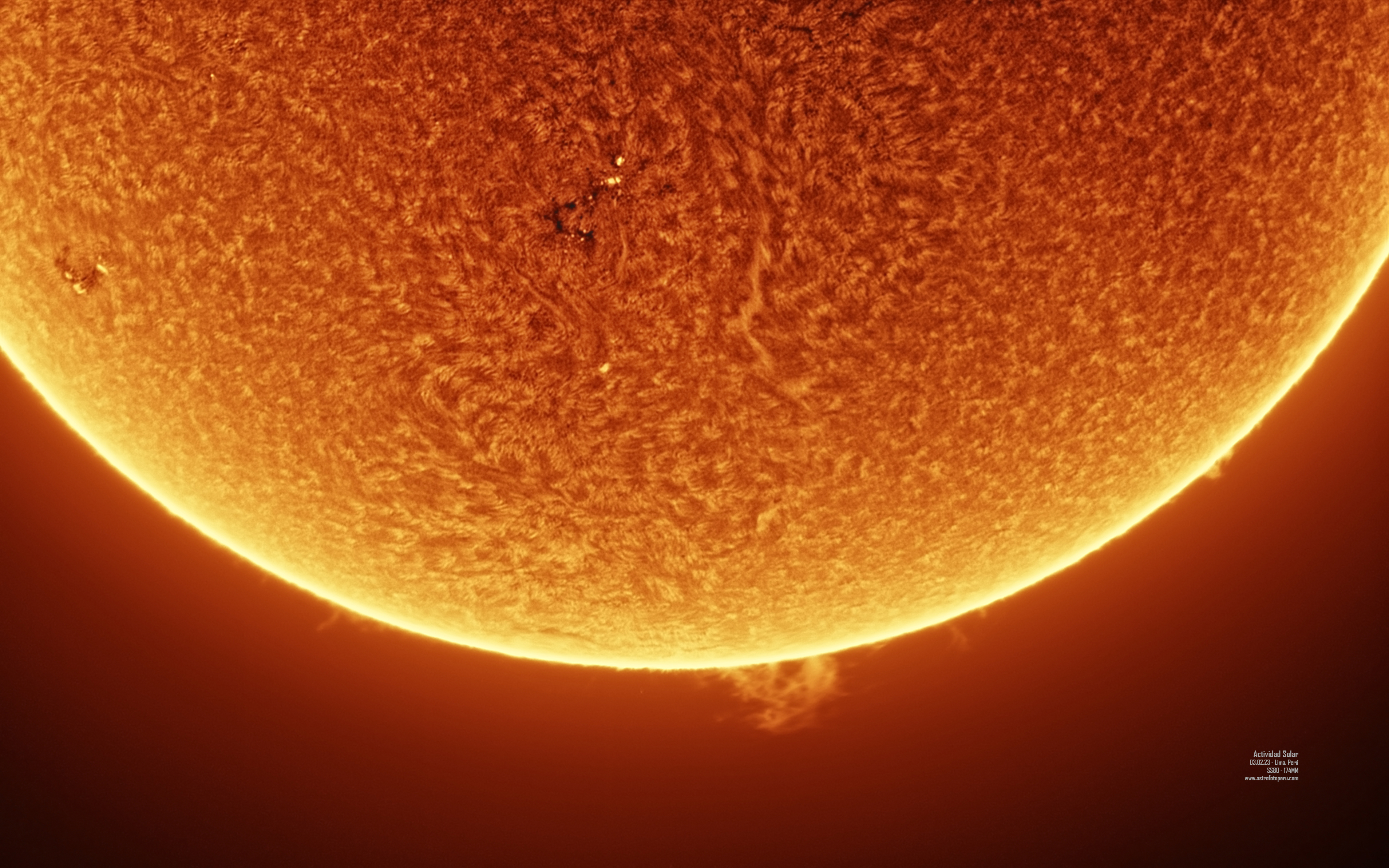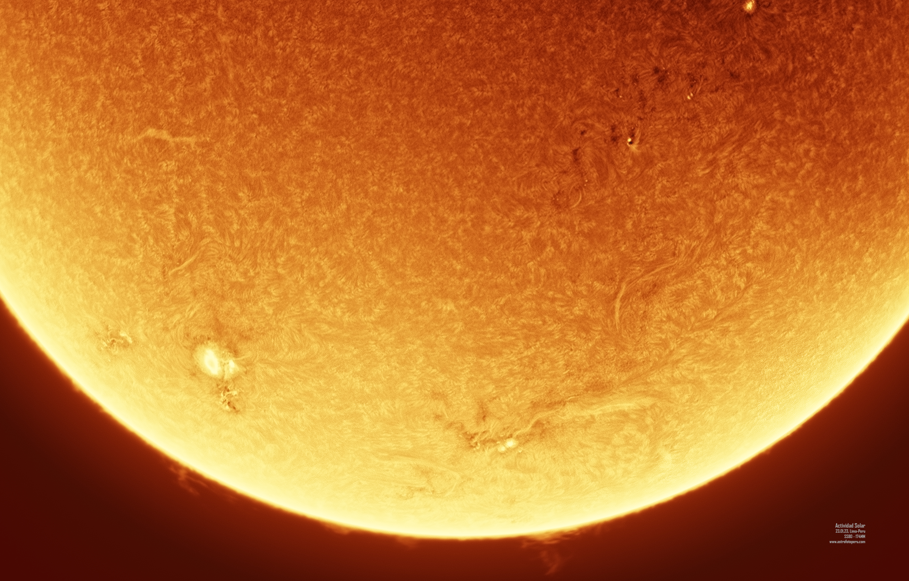 Luego de varios años, vendí el Coronado PST, y decidí comprar un Daystar Solar Scout SS80, de 80 mm de apertura y 1400 mm de distancia focal (f17.5). Estas son algunas imágenes que he captado con el entre el 2022 y 2023: